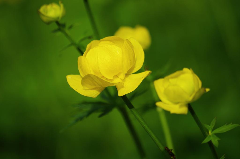 Bulbucii de munte, dupa denumirea latina - Trollius europaeus, o floare delicata, seamana cu un bujor mai mic, de un galben curat, stralucitor.